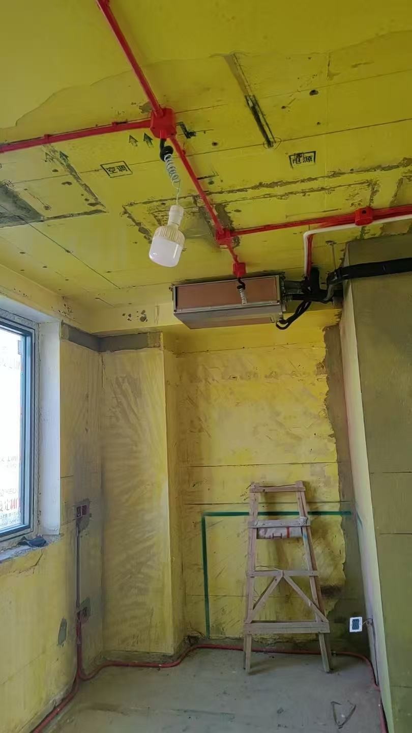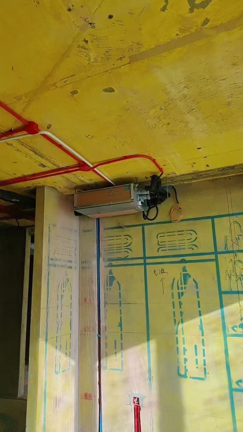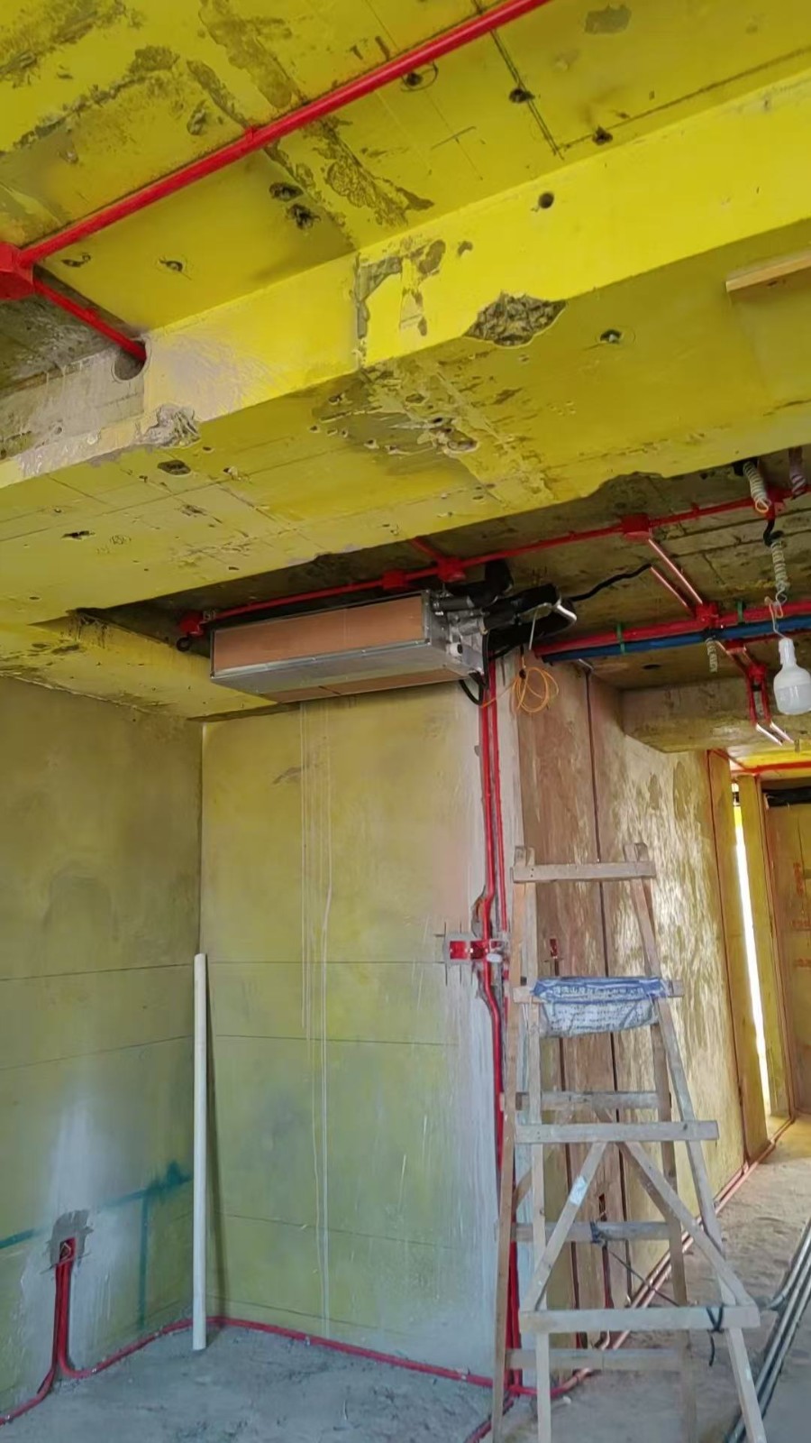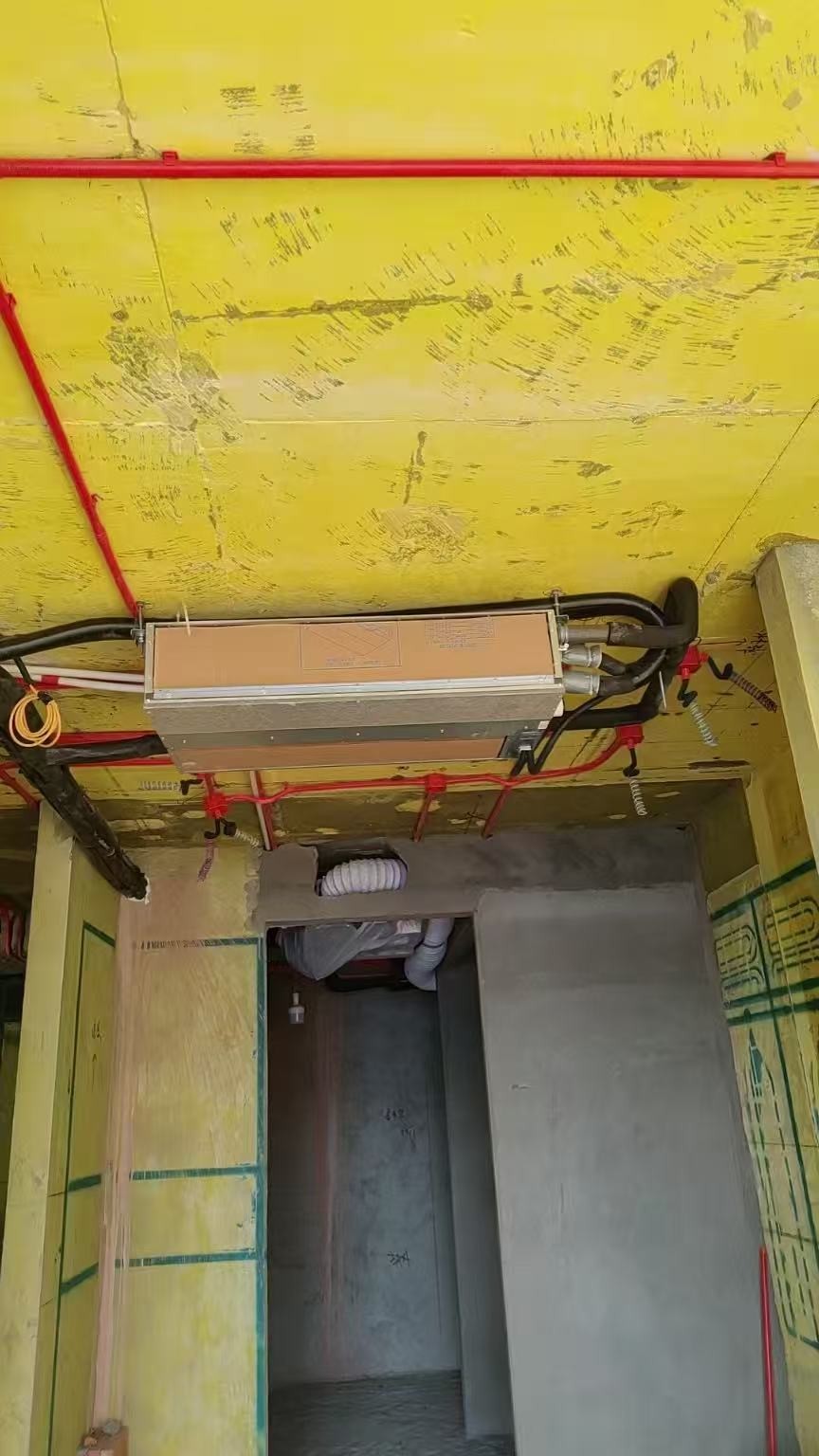 今日項(xiàng)目處于水電與中央空調(diào)安裝階段,室內(nèi)頂面已完成水電管線排布,多臺(tái)中央空調(diào)內(nèi)機(jī)安裝就位,外機(jī)也已固定至指定區(qū)域。墻面做好黃墻綠地基層防護(hù),管線走向標(biāo)注清晰,整體施工按進(jìn)度推進(jìn)。