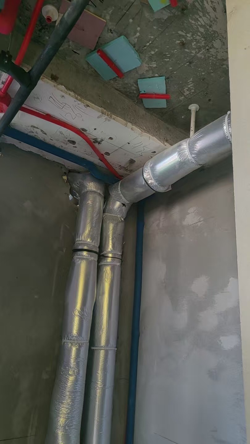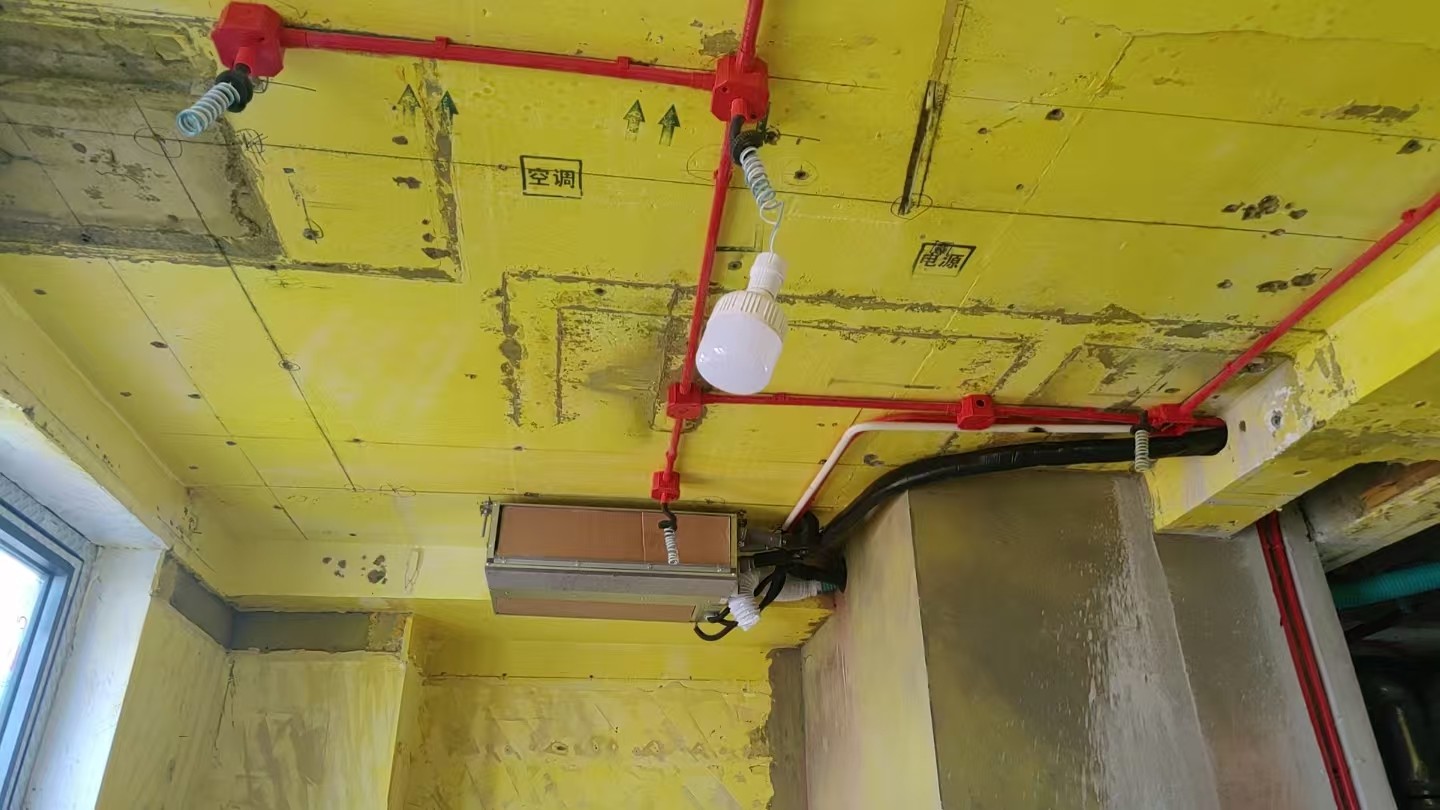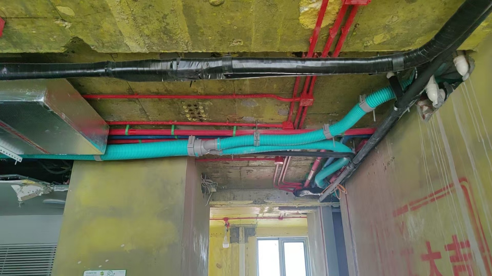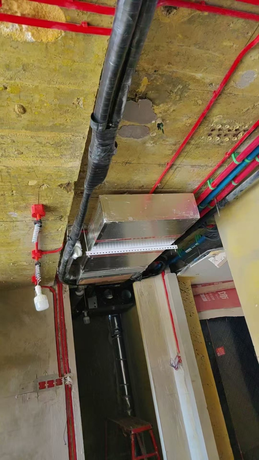 今日項(xiàng)目處于水電與中央空調(diào)安裝階段,室內(nèi)頂面已完成水電管線排布,多臺(tái)中央空調(diào)內(nèi)機(jī)安裝就位,外機(jī)也已固定至指定區(qū)域。墻面做好黃墻綠地基層防護(hù),管線走向標(biāo)注清晰,整體施工按進(jìn)度推進(jìn)。