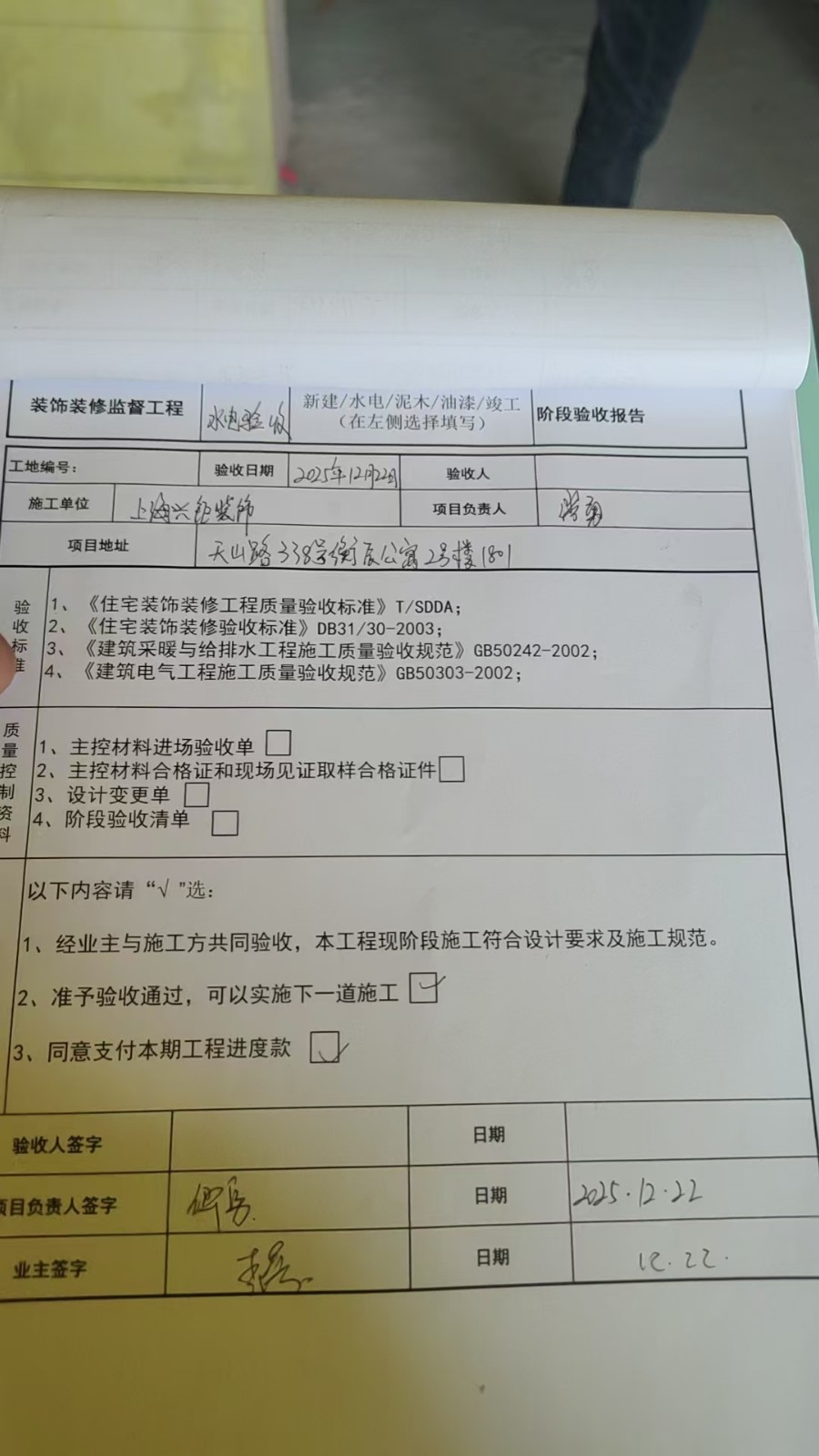 水電整體完工結(jié)束,現(xiàn)場(chǎng)約了業(yè)主和平臺(tái)楊老師共同進(jìn)行驗(yàn)收,下水通水走水測(cè)試驗(yàn)收等,最后驗(yàn)收通過(guò)并且簽了驗(yàn)收單,接下來(lái)期待泥木進(jìn)場(chǎng),繼續(xù)做好細(xì)節(jié)。
