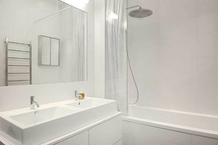 客廳的深色系沙發(fā),在一圈純白我墻壁突顯下顯得質(zhì)感十足