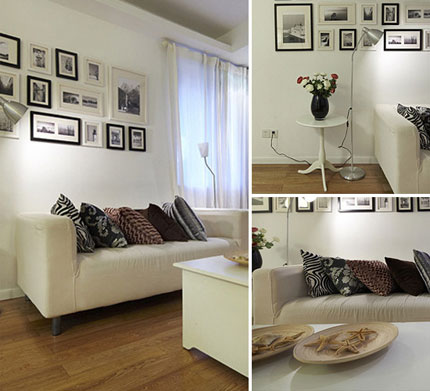 概要: 黑與白的搭配一直是永不退落的時尚潮流。小戶型的空間,裝修色彩復(fù)雜會添加空間的累贅感,有時候色彩的簡潔比設(shè)計的簡潔更能節(jié)省空間?! 〖?xì)節(jié)看下客廳的各個局部,以老照片來裝飾背景墻,很符合80后的情感。黑白照片是最初的回憶。抬腳的沙發(fā),易于衛(wèi)生清潔。客廳里簡潔的家具,給空間劃出很多留白,為后期生活帶來很多便利。
