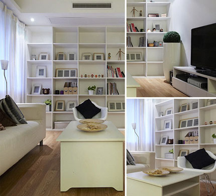 客廳的茶幾及書柜,大量的收納功能,直到頂面的制作方式,不僅可以增加收納功能,更是一種簡單時尚的裝飾手法,正如簡約風(fēng)格一樣,簡約不簡單。