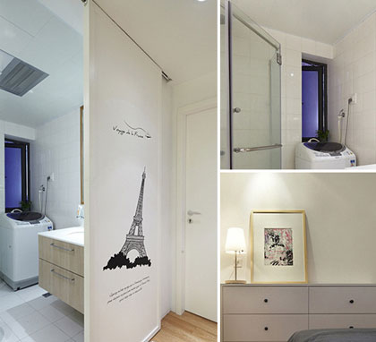 極致小戶型更重視衛(wèi)生間設(shè)計,將洗潄臺與浴室相結(jié)合,很大節(jié)省了空間。