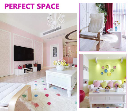 客廳里的色彩用得非常豐富。粉綠色的客廳背景墻,粉紅色的靠墊,粉綠色的靠墊。沙發(fā)、茶幾、地毯清新的白色為主。雖然空間里也出了大紅色,常規(guī)上說紅與綠是色彩搭配禁忌。在這個(gè)空間里卻成為色彩點(diǎn)綴亮點(diǎn)。