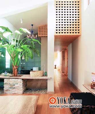 婆娑的芭蕉樹、粗糙的石臺,看上去像是把外面的花園搬進了屋里。從生態(tài)產(chǎn)品到生態(tài)家居,隨著國人環(huán)保意識的提高,越來越多的人把保持生態(tài)平衡的綠色觀念引入了生活。與傳統(tǒng)設(shè)計相比,“生態(tài)家居”更加注重在居室中生理與心理的健康,在室內(nèi)空間的自然性、材料、濕度、溫度等方面有著更為合理的統(tǒng)籌規(guī)劃,從而在更高更廣的范圍內(nèi)營造舒適、自然的居住感覺。