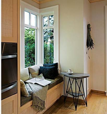 獨(dú)家點(diǎn)評(píng):用柔軟的墊背營造出舒適、溫暖的感覺,旁邊加上的三角形小桌子,立馬在小小的空間內(nèi)獨(dú)立出一個(gè)休閑區(qū),可謂匠心獨(dú)運(yùn)。