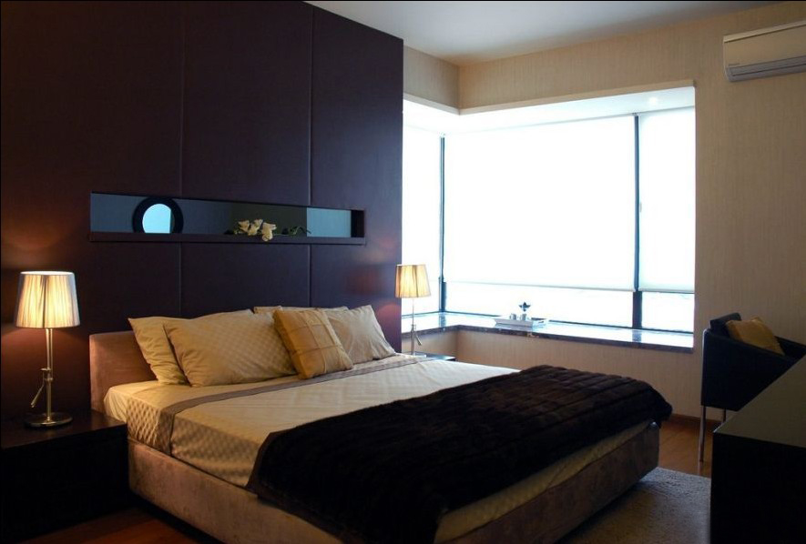 主人對軟包似乎頗有鐘愛,臥室背景墻沉穩(wěn)大氣。