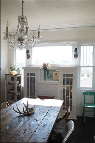 有人說(shuō)家就是要越住越有感覺(jué),很多家裝的圖片,都是業(yè)主住進(jìn)一年或兩年后才拍,這樣設(shè)計(jì)才能達(dá)到一定水準(zhǔn)。我只看到在這里這句話(huà)對(duì)了一半,這張舊舊的餐桌給這個(gè)新家增添了不少溫馨的舒適感。