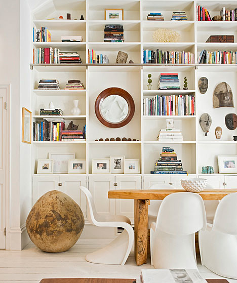 我們細(xì)看這個(gè)收納墻吧,為了與整個(gè)原木色相符,家具漆都采用近乎純白的色調(diào)。收納柜也做成不同樣式來(lái)存放不同物件,格局清晰明快。