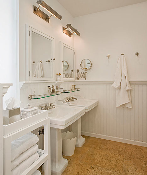 衛(wèi)生間里臺(tái)盆與墻面同色,黃的地面磚以白色空間增添溫馨感。