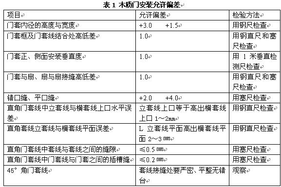 ——門(mén)套線的安裝允許值應(yīng)符合表1的要求。