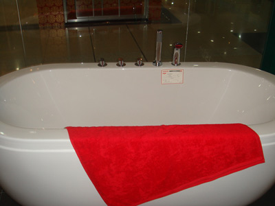 衛(wèi)生間是家居中最能體現(xiàn)主人藝術(shù)品位的一種表現(xiàn)形式。隨著社會(huì)的發(fā)展,科技的進(jìn)步以及人們的審美觀念的提高,衛(wèi)生間也成了家庭裝修中的一個(gè)時(shí)尚主題,又以前的單一的入廁功能演澤到今天的集淋浴,休閑,保健,環(huán)保于一體,通過各種產(chǎn)品的搭配來彰顯每個(gè)家庭的藝術(shù)品位,體現(xiàn)主人身份地位,享受現(xiàn)代優(yōu)雅生活的個(gè)性空間。 小編在西四環(huán)的紅星美凱龍看見一款簡(jiǎn)潔大方彰顯品位的獨(dú)立浴缸。