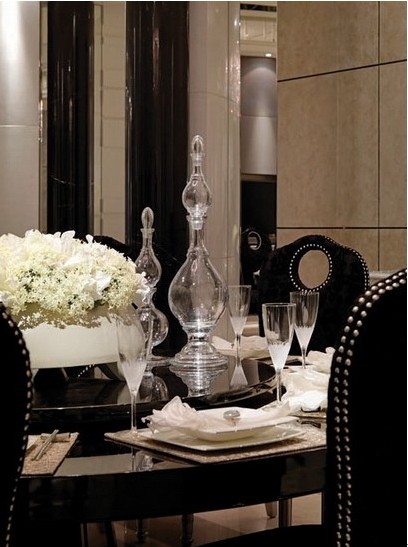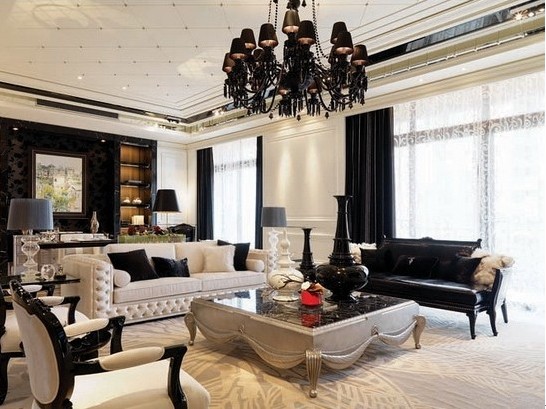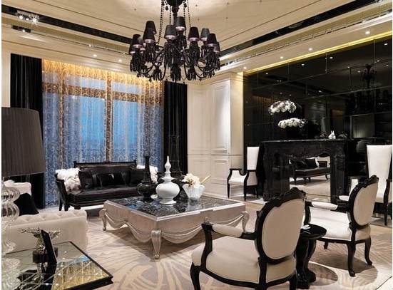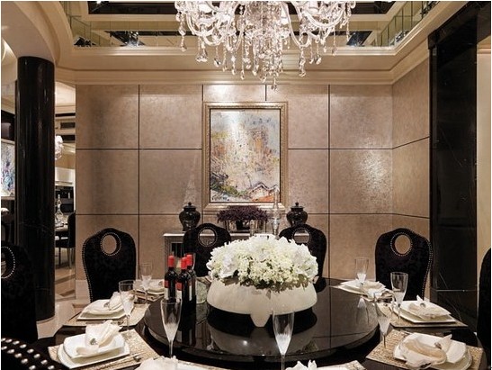 水晶燈是歐式建筑不可缺少的一部分。客廳的水晶燈用黑來表現(xiàn)出它的沉穩(wěn)、神秘的一面。餐廳則用白色來表現(xiàn)出內(nèi)心的純粹和不失的品味。