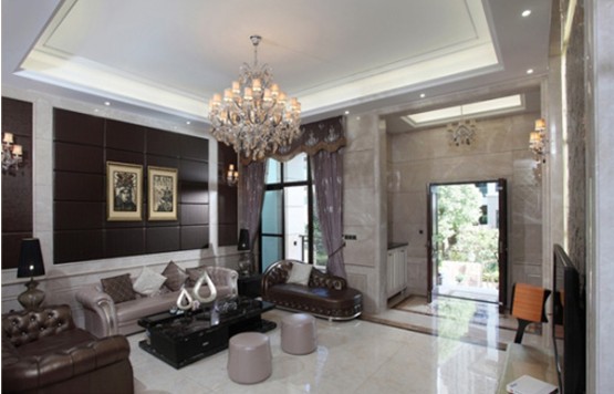 概要: 設(shè)計手法上主要采用新古典主義+歐式元素+現(xiàn)代元素,豪華中卻不見堆砌,整體上顯得奢華與貴氣,同時又體現(xiàn)時尚與優(yōu)雅,與業(yè)主的生活品味與審美訴求吻合?! 】蛷d:客廳空間,以米黃色與白色系為主色調(diào),這樣空間顯得干凈明亮,地面墻面使用具質(zhì)感的大理石,氣派、尊貴。客廳背景墻則間以現(xiàn)代時尚的黑色軟包,配以相近色系的精美沙發(fā)與家具,顯得十分時尚、沉穩(wěn)。