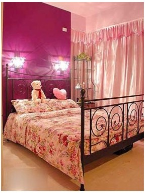 紫色的背景墻面在燈光的照耀下,呈現(xiàn)出的斑駁光影溫馨而別致,讓人的內(nèi)心感到平和而澄靜。整個(gè)房間都充滿了溫馨的感覺(jué),帶來(lái)的是另外一種親和味道。