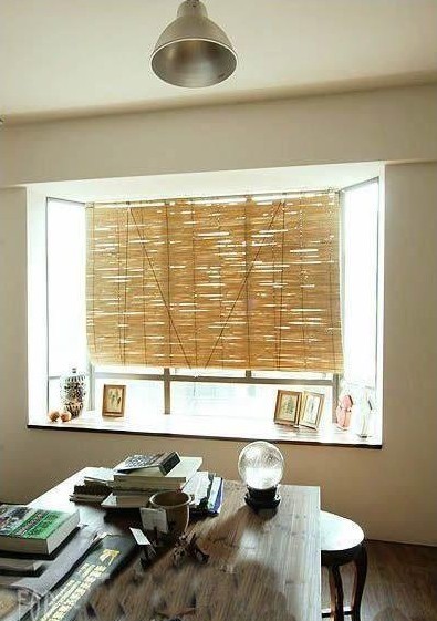 竹制窗簾,臥室用古典的壁柜,窗臺上擺放著青花瓷器,那一個竹制窗簾,是整個房間最有特色的地方。再配以原木地板,將整個空間的古典田園氣息顯現(xiàn)得淋漓盡至。