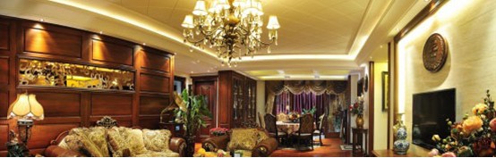 高雅中表現(xiàn)前衛(wèi)時尚,既有典雅氣質(zhì)又有鮮明的時代特征,不可思議地將兩種對立的感覺完美統(tǒng)一,將貴族的品味融于生活,展示著一種動人心魄的震撼。客廳內(nèi)細致的基調(diào)兼顧實用性,整個空間墻面色調(diào)為淡雅的米黃色,結(jié)合石材和木材及歐式藝術(shù)品,使整個空間富有歷史氣息。寬厚的歐式沙發(fā)、大氣且舒適,讓勞累一天的主人可以在此享受家?guī)淼臏剀啊?/p>