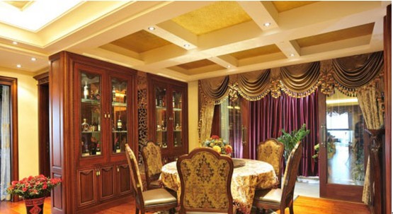 如果說奢侈是地位的象征,在華麗璀璨的光澤下,莊重的造型、無暇的質(zhì)地,時時勾勒出一幅大家風(fēng)范。那么奢適則是另一種境界,大師的設(shè)計、精巧的手工,將貴族般的品味融于生活,細枝末節(jié),展示著一種動人心魄的震撼。餐廳天花做了一個交叉的井字型,富有立體感。餐桌上的花束顏色無不經(jīng)過設(shè)計師的精心選擇,不僅要與整體風(fēng)格相搭配,而且要表現(xiàn)出明亮的感覺。