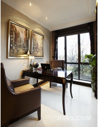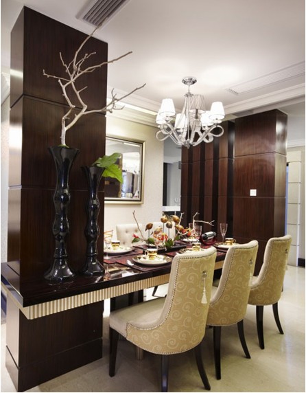 開(kāi)闊的空間中,設(shè)計(jì)師采用了古典與老上海結(jié)合的手法,居室以奢華的淺金色調(diào)配以沉穩(wěn)大氣的木飾面、各類復(fù)古花型紋樣充斥于壁紙、軟裝擺件、裝飾布藝中,體現(xiàn)該居所奢華但不繁復(fù)、內(nèi)斂又不張揚(yáng)。各式老上海小品,古樸的鳥籠、略顯沙啞的留聲機(jī)、百樂(lè)門式的吧臺(tái),茶余飯后、身處其中,音樂(lè)悠揚(yáng)的響起,仿佛又馳騁于十里洋場(chǎng)的老上海之中,與屋主高雅的品味、對(duì)于生活享受的態(tài)度完全相符。