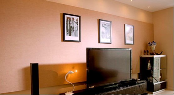 電視墻上的照片用數(shù)量的有序排列來(lái)達(dá)到美感,以簡(jiǎn)單造意;
