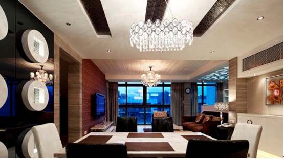 本案的時(shí)尚混搭屬于低調(diào)+時(shí)尚型的裝飾;華麗的時(shí)尚造型、白色、原木色與深木色互相搭配,昭示主人豐富的情感與格調(diào);