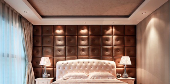 深咖啡色的軟皮包床背景墻、白色的皮床背顯得很時(shí)尚霸氣;