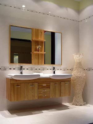無(wú)論是在臺(tái)盆表面還是在浴室柜的臺(tái)面上,放過(guò)多的清潔衛(wèi)生用品都會(huì)顯得雜亂無(wú)章,而且容易碰倒,因此不妨在面盆上部貼墻的位置釘上10厘米寬的隔板,只要能放得下化妝瓶、刷子、洗漱杯等便可以了。隔板高度以不妨礙使用水龍頭為宜,木板、玻璃等材料都是不錯(cuò)的選擇。