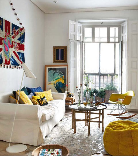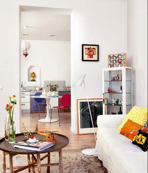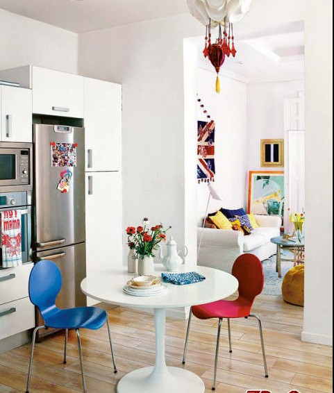 本期案列為位于西班牙的馬德里一幢繽紛多彩的公寓樓的某一個(gè)單元,60平左右的小戶型。走進(jìn)這個(gè)色彩繽紛的小屋子撲面而來的讓人感覺平和而溫馨。公寓的主人是一對(duì)留學(xué)生夫婦,不是保留本國(guó)的文化特色,充分融入這個(gè)這國(guó)家的文化氛圍,很精彩。