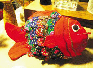 充滿鄉(xiāng)土氣息的魚形抱枕,象征年年有余。除了可以當(dāng)抱枕,還可以掛在墻上當(dāng)掛飾。
