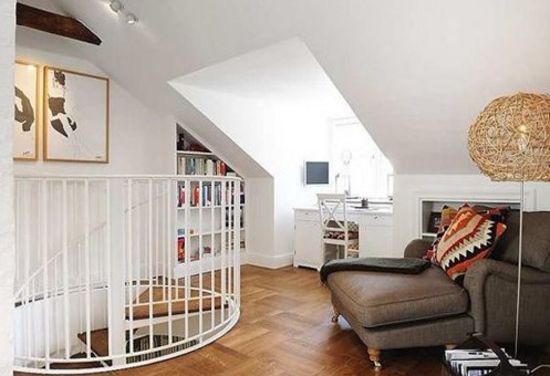 以白色和咖啡色一半一半的比例,讓人登上二層時有比一層更加寬敞明亮的感覺。利用不規(guī)則屋頂,加大采光的角度,搭配白色墻壁的反射,室內(nèi)光線更加明亮。鳥巢狀的燈罩和咖啡色的沙發(fā)搭配在一起,讓一層和二層的設(shè)計有所聯(lián)系,這樣整體家居的設(shè)計主題才能夠統(tǒng)一。同時二層開始加入紅色的裝修,為下一步的紅色主題做鋪墊。