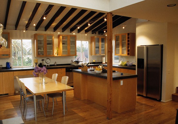 時至今日,這種“省電費眼”的照明方式以及落伍了?,F(xiàn)代廚房的燈光設計分為兩個層面,除了對整個廚房的照明,在洗滌區(qū)和操作臺也要增設櫥柜專業(yè)射燈。這類射燈光線適度,開關方便,讓你眼睛得到解放。
