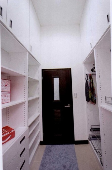 將通往走道的畸零空間規(guī)劃為更衣室,兩側(cè)必須有足夠的收納空間,系統(tǒng)柜依照更衣室的狹長(zhǎng)型設(shè)計(jì)成L形,充分發(fā)揮狹小空間的收納潛力。