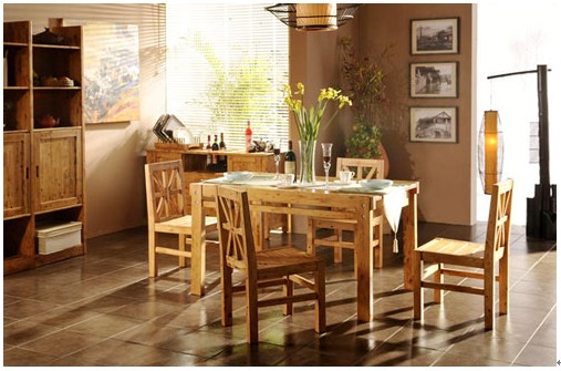 原木餐桌打造自然環(huán)保生動的餐廳格局,線條簡約木質餐桌與餐椅帶著濃郁的田園風格,與淡淡的懷舊味道,餐桌上的白底藍花朵與墻上的藍白碗碟色調相呼應,自然樸素的氣息瞬間流露。