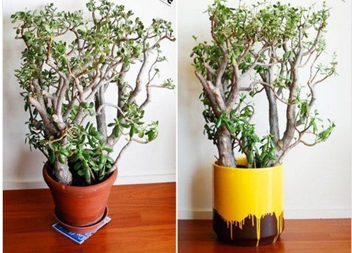 這款排泄物顏色的花盆,看著很不舒服,不過大部分花瓶貌似都是這顏色,但是你又很喜歡這花盆的造型,這里有個兩全其美的辦法哦,我們可以讓它穿上“花衣”辦法相當?shù)暮唵危褪怯媚慵已b修時剩下的墻面漆啦!
