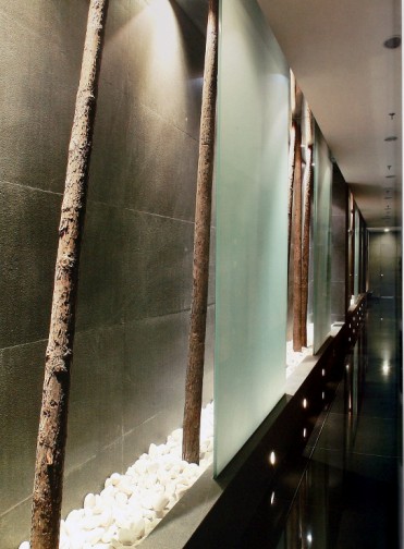 廳堂類室內(nèi)空間包括各種門廳/中庭/過(guò)廳/休息廳和大堂等,這些場(chǎng)所常作為建筑的交通樞紐和綜合服務(wù)空間。其中的大堂/中庭/門廳等由于其功能特點(diǎn)和地理位置,往往成為大型建筑的標(biāo)志空間。因此,室內(nèi)色彩色及既要表明建筑物的主題,又要成為聯(lián)系各部分空間的紐帶。由于此類空間的功能特點(diǎn),背景色調(diào)宜以低度的色調(diào)為主,可以在局部重點(diǎn)位置選用濃重,醒目的色彩。另外,對(duì)于諸如過(guò)廳/電梯廳這樣的功能比較簡(jiǎn)單的場(chǎng)所,它的功能地位比較從屬,主體色不宜與背景色形成過(guò)強(qiáng)的對(duì)比,反而倒是應(yīng)注意與周圍其他空間的銜接要比較柔和。