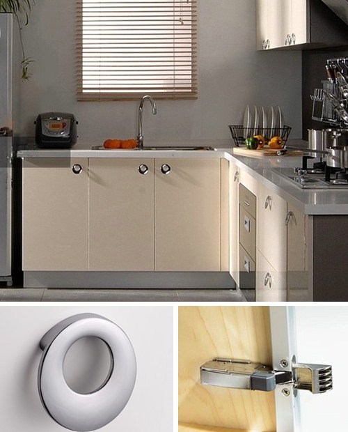 米色的木質(zhì)柜面清新淡雅,搭配白色的仿石柜面時(shí)尚之余不失清秀,圓環(huán)形的拉手不僅使我們使用更方便,也使方正的櫥柜增添幾分柔和。淺米色的柜面自然中帶點(diǎn)小溫馨,簡單干練的磨砂銀色拉手體現(xiàn)出現(xiàn)代的時(shí)尚風(fēng)格,黑色的仿大理石柜面有股低調(diào)的奢華感覺,整個(gè)櫥柜清新又不失高雅。