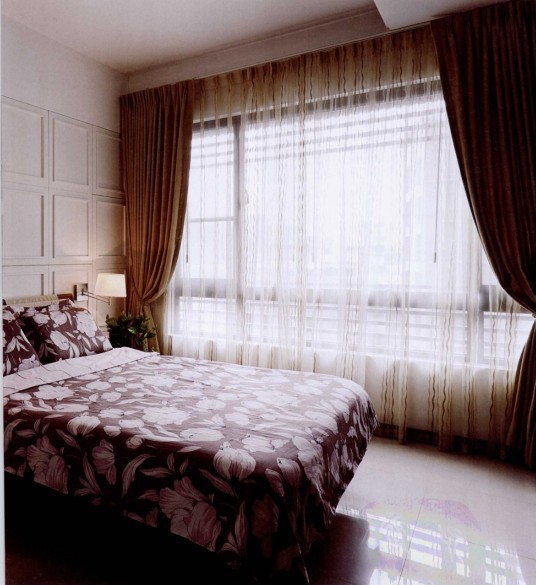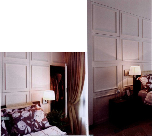 業(yè)主一向秉持清爽簡(jiǎn)約風(fēng)格,床頭的整面收納柜,設(shè)計(jì)師以美式風(fēng)格線板制作門片,迎合主人的風(fēng)格喜好,也讓人看不出柜體所在。
