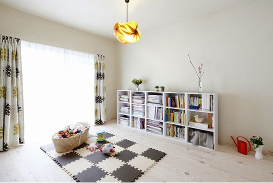 粉色的墻壁打造出柔和輕松的基調(diào)。紅黃色相間的卡通窗簾,很符合孩子們的口味,也讓空間的顏色變得不再單一。因為房間面積有限,角落用隔板改造成開放式的儲物區(qū)域,既不會顯得空間沉悶,也避免了玩具過多帶來的凌亂。房間中央擺放了孩子喜歡的小滑梯,可愛的玩偶,色彩鮮明,童趣十足。