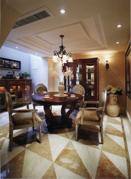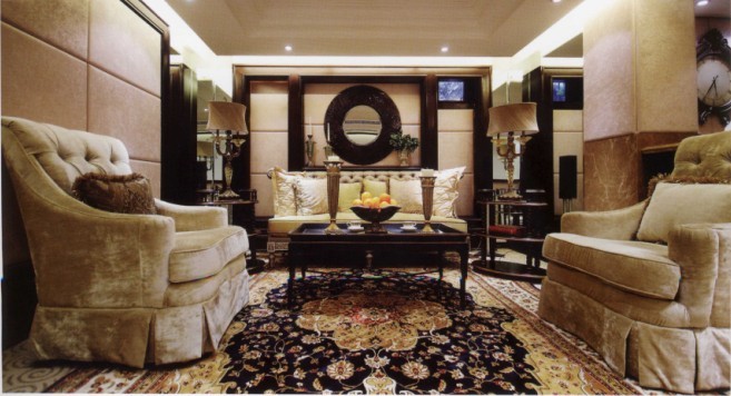 新貴族式風(fēng)格是尊貴、端莊的,因此對(duì)于材質(zhì)的選擇很是考究。大廳和公共區(qū)域的地面,以及衛(wèi)生間的墻面、地面,通常采用花崗石材拼花鋪貼。而臥室則采用滿鋪的羊毛地毯,或者實(shí)木地板結(jié)合手工塊毯鋪地。