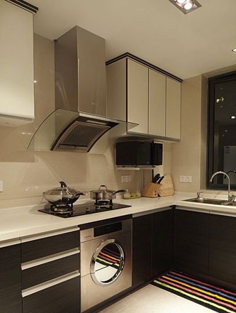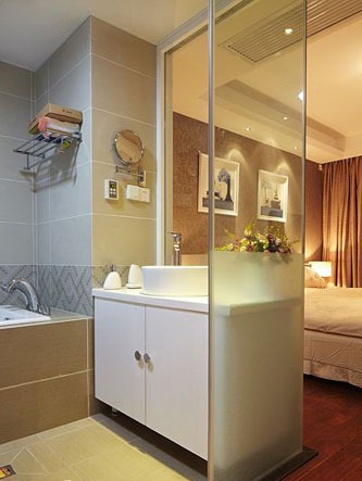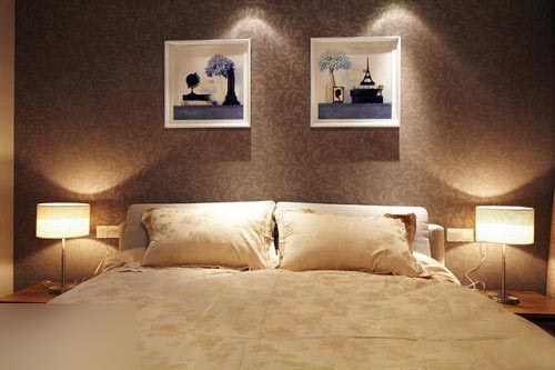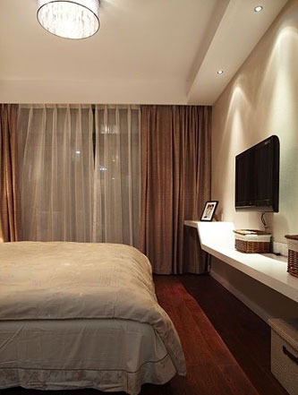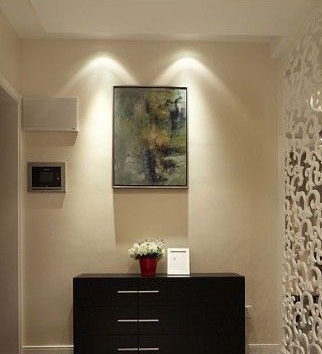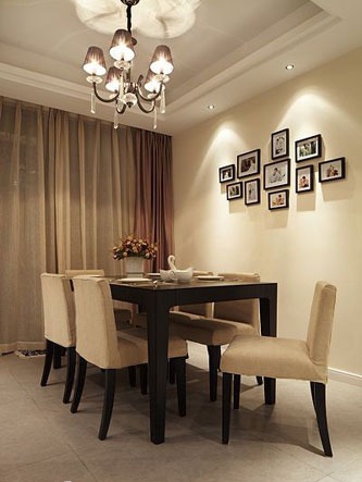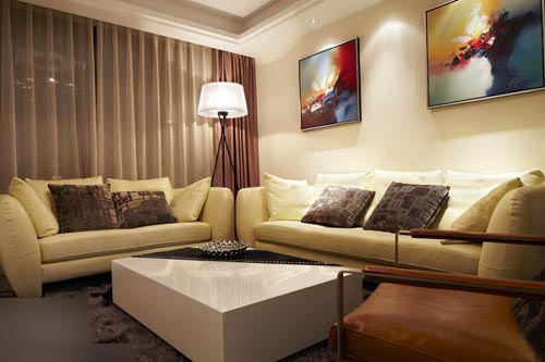 一進(jìn)房間,整個(gè)空間給人一種清爽不失高貴的感覺。客廳區(qū)域墻面沒有做過多的裝飾,墻面采用米黃色的油漆,客廳的吊頂也沒有做的太復(fù)雜只是在墻的邊角走了一圈邊,做成上下疊級(jí)的吊頂,并配上水晶吊燈,奶油色的布藝沙發(fā)搭配深色靠墊,既簡單又富有現(xiàn)代感。一個(gè)漂亮的落地?zé)粽樟琳麄€(gè)房間又起到了很好的裝飾做用,一舉兩得。沙發(fā)背景墻沒必要做的復(fù)雜,掛上兩幅簡單油畫,現(xiàn)代感極強(qiáng)。
