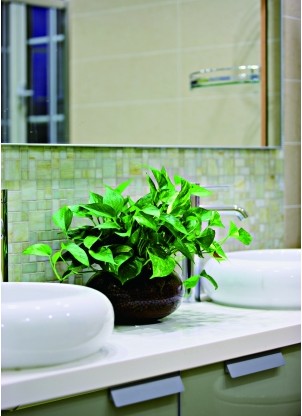 3. 大多數(shù)衛(wèi)生間墻面多用白色或淺色瓷磚,搭配上綠色的觀賞植物,會更加顯眼悅目。但有些瓷磚的光潔美觀的釉面磚能釋放出放射性物質(zhì),對人體健康有害,這時,我們就可以放置一盆煙草、雞冠花等植物,其對吸收放射性物質(zhì)很有幫助。