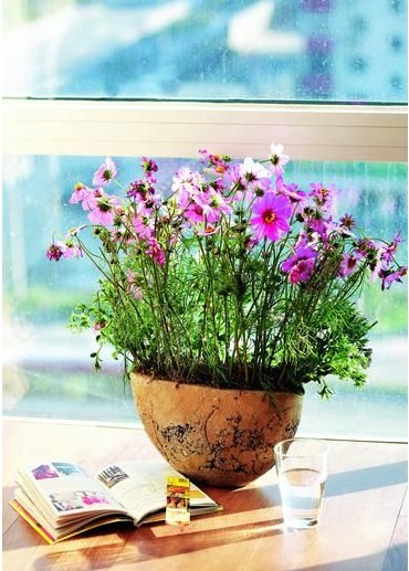 任何陽光充足的地方,波斯菊是種非常喜歡陽光的植物,適應能力相對于其它花草也要強一些,而且波斯菊還被稱為是“二氧化硫檢測儀”,它可以幫助空氣得到凈化,放置在陽光下的波斯菊也顯得更加明艷亮麗。