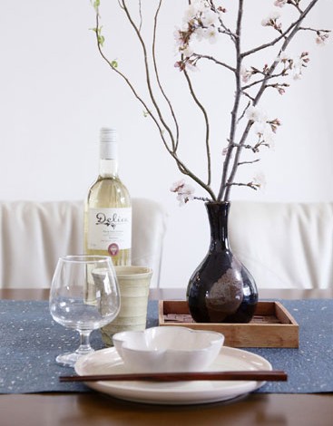藍色桌布讓人覺得淳樸,木質(zhì)托盤與深棕色的花瓶營造出一絲舊時回憶的味道,也頗具民族特色。一株新采來的花枝帶給人希望,同時把餐廳變得典雅。一瓶洋酒,一只高腳杯,在雅致的頗帶民族味道的餐廳中,成功融入了現(xiàn)代的元素,更有一番別致的風情。
