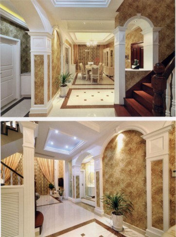本案將裝飾藝術(shù)派的風(fēng)格和后古典主義完美地融合在一起,以米色為基調(diào),用白色來(lái)打造做工精致的細(xì)部,并適度地運(yùn)用光線引導(dǎo)空間流線,并一搭配具有新古典風(fēng)格的家具,從而共同營(yíng)造出具有高貴氣質(zhì)的居室空間,進(jìn)而使人擁有出現(xiàn)代奢華空間之中的感受。