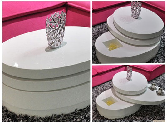 這款茶幾可以360度全方位分層旋轉(zhuǎn)。隨意變換造型,方便多種場(chǎng)合使用。底層設(shè)計(jì)有儲(chǔ)物空間,可放置一些零碎物品。