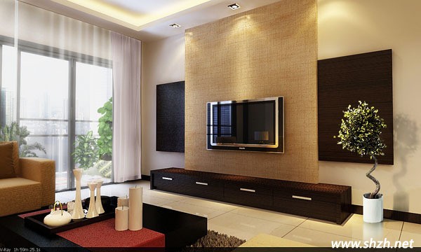 現(xiàn)在用于電視墻表面裝飾的材料種類很多,有石材類、玻璃類、金屬類、壁紙類等等。因小戶型的面積有限,所以一般不適合那些太過毛糙或厚重的石材類材料,而那些局部使用的鏡子會給空間帶來擴(kuò)大視野的效果,但要注意鏡子的面積不宜過大,否則會給人眼花繚亂的感覺。另外,壁紙類材料往往能給小戶型帶來溫馨多變的面孔,所以深得人們的喜愛。
