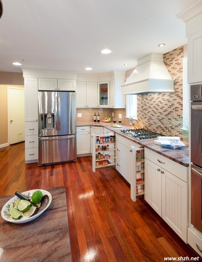 最后我們來說說廚房,這有時另外一個我們感覺無力的裝修,好像怎么裝修都不能達(dá)到最好的效果,上海裝潢網(wǎng)小編跟大家說說,在裝修廚房時應(yīng)該注意哪些事項。第一是地面,廚房的地面不像其他的地方,因?yàn)閺N房是油煙和雜碎垃圾經(jīng)常存在的地方,所以我們最好不要鋪設(shè)白色的瓷磚,否則麻煩的就是以后的清潔了。第二是櫥柜,在裝櫥柜之前我們首先要確定水路的是暢通的,不然以后發(fā)現(xiàn)水路不同,返工起來是很麻煩的。第三是門,那么門相對就簡單一點(diǎn),唯一要注意的是要方便進(jìn)出,木質(zhì)的移門就是很不錯的選擇。