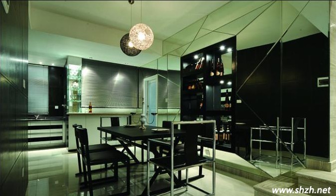 餐廳銀鏡勾勒出幾何形體的鉆石面,把黑色皮紋磚的細(xì)膩、不銹鋼的精美與雅致襯托得淋漓盡致,高檔且時(shí)尚。開(kāi)敞的流動(dòng)空間中,所蘊(yùn)含的是空間的品質(zhì),摒棄多余的裝飾,保留材質(zhì)本身的美感與形體的純粹,使空間呈現(xiàn)出多元的藝術(shù)元素與生活情趣。一個(gè)空間的設(shè)計(jì),表達(dá)了一種情愫,也是一種生活方式的體現(xiàn),這不僅把整體的立體感發(fā)揮出來(lái),從中也透露出了很多的文化內(nèi)涵。