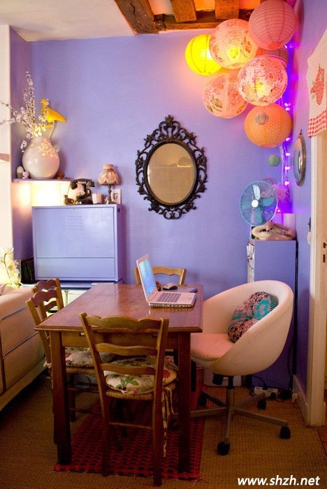 小小的餐廳融入了許多流行元素,紫色的墻面神秘而性感,歐式古典風(fēng)格的鏡子個(gè)性但是并不突兀,房間右上角燈籠樣式的照明燈是中國(guó)元素的應(yīng)用。如此小巧的空間卻可以讓諸多元素巧妙的共存,我們不得不佩服設(shè)計(jì)師的獨(dú)具匠心。之前就說(shuō)過(guò)現(xiàn)在的餐廳不僅僅只是用來(lái)就餐了,那么就像這樣的一個(gè)小餐廳完全可以成為你家里的“辦公室”,獨(dú)特而美妙的享受。