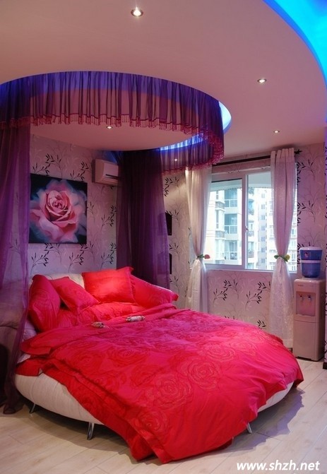人們都說喜歡紫色的人的性格是優(yōu)雅而高尚的,由此我們可以看出女主人內(nèi)心的純凈。很多人在裝飾婚房的時候喜歡用大紅色,其實紫色也是一種強烈感情的代表。不是有“紫色的熱情”這一說法嗎?它雖不象大紅色那么火熱,但也可以像用它的光輝的點燃所有的溫情。所以用紫色來裝飾婚房最合適不過,我們躺在床上就可以享受來自普羅旺斯的浪漫。